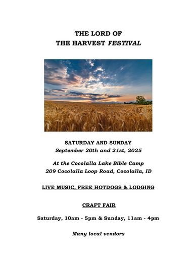 Lord of the Harvest Vendor & Craft Show is free to the public. Come join us for 2 days of Inspiring messages, Free Hot Dogs, Free Entertainment, Food Vendors, Craft Fair and Bouncy House/Playground for kids.